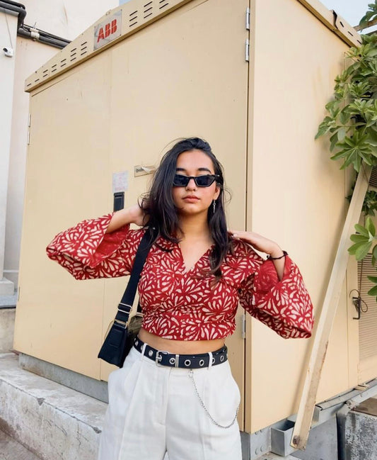 Red Rose Wrap Top